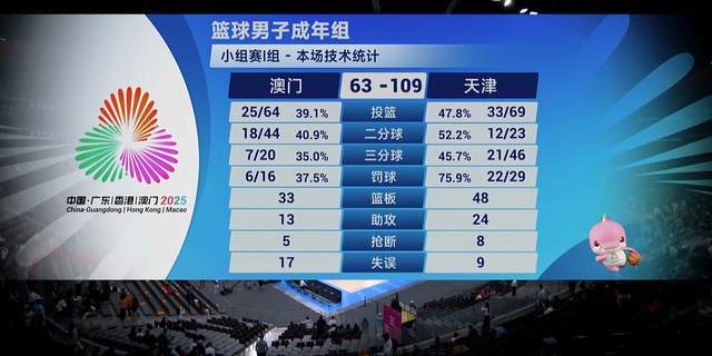 末节决战,天津队丝毫没有松懈,再次把领先拉开到了40+。澳门队也没啥得分的办法,最终,天津全运男篮以109-63大胜澳门队46分,斩获开门红。