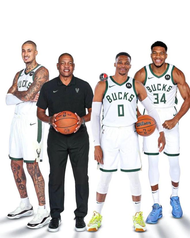 雄鹿媒体SleeperBucks更新社媒,晒出库兹马+里弗斯+威少+字母哥的合成照,并配文道:“我们是否应该考虑引进拉塞尔-威斯布鲁克?”其实雄鹿现在不缺后卫,有科尔-安东尼、特伦特、罗