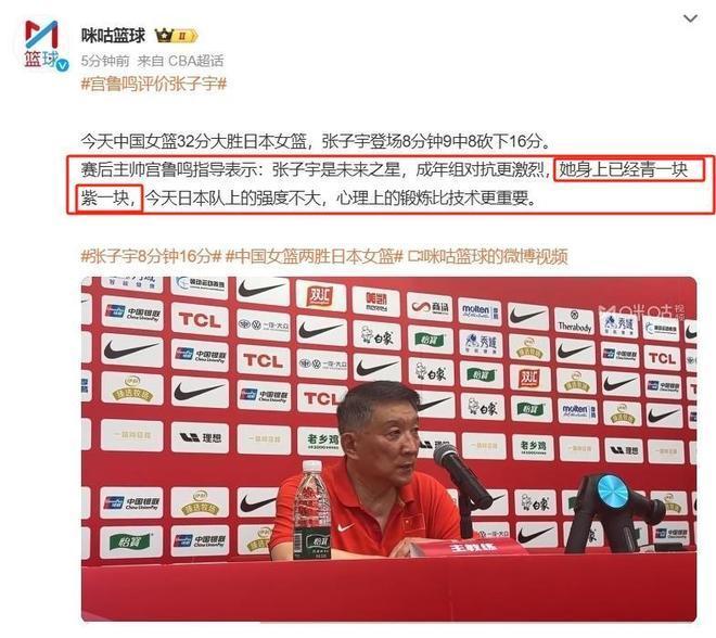 中国女篮获胜后,对手围堵张子宇合影,宫鲁鸣显得措手不及。