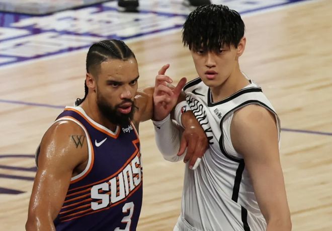 2025年NBA中国赛在昨晚终于开始了第一场比赛,对阵双方是布鲁克林篮网队和菲尼克斯太阳队。其实没有多少人在意篮网队和太阳队的比赛结果,大家都是来看曾凡博的。篮网队用一份E