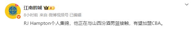 NBA后卫空降CBA 三分神准+闪电突破 山西男篮再添猛将今日,据媒体人江南的城报道,前NBA球员RJ-汉普顿正在与山西男篮接触,双方正在进行进一步沟通,而且是两厢情愿,RJ-汉普顿有望加