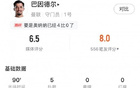 B费全场数据:失点+78.3%传球成功率,5.8分评分全场最低